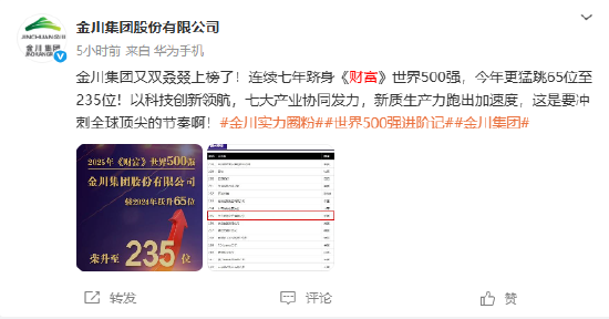 金川集团连续七年跻身《财富》世界500强,2025年猛跳65位至235位!以科技创新领航,七大产业协同发力,新质生产力跑出加速度!